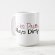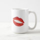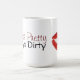 En kopp för en stygg flicka. Designen presenterar citationstecknet, "ser nätt, lekar smutsar ner.", med en röd läppstiftkyss.