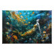 ”Seraphina” – Vacker mystisk havfrusna. Drömlandsak under ytan: I denna lugna och surrealistiska undervattensmiljö ligger en vacker havfrusna med en utsmyckad guldfiskstjärt på havsbotten, hennes flödande hår driver i strömmen i ett strålande blått hav. De kringliggande havsdjuren, inklusive en nyfiken människolik bläckfisk och livfulla fiskar, ger liv åt scenen. De subtila flerfärgade nyanserna och de intrikata detaljerna i den prerafaelitiska stilen gör denna till en fängslande och vacker bild.
