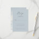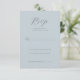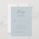 This wedding RSVP card features a minimalist and elegant design with a soft pastel blue background, creating a serene and calming atmosphere. The layout is clean and balanced, with the focal point being the large cursive "RSVP" in dark gray at the top center, followed by clear instructions for responding. Below, there's space for personalization with a placeholder for a name, and two simple selection options presented in bullet points, ensuring easy readability. The overall style is modern and understated, perfect for conveying formality and sophistication without excessive decoration, making it ideal for any formal event.