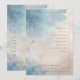 This elegant wedding program features a serene watercolor design with soft blue and beige hues, creating a tranquil and dreamy atmosphere. The layout is structured yet airy, with a vertical "WELCOME" text on the left and a centered ceremony schedule in uppercase serif fonts. Subtle cloud-like motifs enhance the ethereal feel, while customizable name and date placeholders allow for personalization. Perfect for couples seeking a formal yet approachable aesthetic, this program captures the essence of celebration and unity.