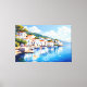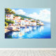 En utsökt oljemålning som skildrar en stillastående Medelhavskustby. Scenen visar hur byggnad vittrade med terracotta-tak med varm orange, som är kapslade mellan vibrerande grönt träd och shruber. Under lugn azure vatten återger man den typiska omgivningen, med små fiskebåtar som försiktigt dockas, vilket ger charm till den fredliga hamnen. Himmel är adorberat med mjuka vita moln som lyser med solljus, medan fiskmås solar sig på ett skonsamt sätt ovanför. De djärva, texturerade borshstrokerna och paletten med riker av blues, vita och jordtoner ger liv åt den livliga men serene atmosfären och framkallar det väsentliga i en fredlig reträtt av havsområden.