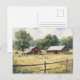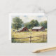 Serene Country Farm Scene with Red Barn and Cattle Vykort