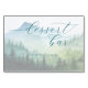 This wedding tabletop sign features a serene, nature-inspired design with a soft watercolor aesthetic. The composition showcases layered mountains and pine trees in varying shades of green and blue, creating a misty, ethereal atmosphere. Elegant cursive typography highlights the "dessert bar" text, while a simple sans-serif font invites guests to "PLEASE TAKE A TREAT!" The overall mood is tranquil and inviting, perfect for enhancing the ambiance at your special event.