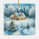 Serene Log Cabin i en vinterskog Julgransprydnad Keramik