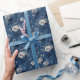 This elegant wrapping paper features a serene floral design with large peonies and smaller buds set against a deep navy blue background, creating a sophisticated monochromatic contrast. The classic botanical theme is enhanced by subtle butterfly motifs, evoking a vintage aesthetic perfect for any special occasion. Rendered in a style reminiscent of traditional linocut printing, the pattern offers a handcrafted feel that adds charm to your gift-wrapping experience. Ideal for conveying a sense of calm and nostalgia, this design is versatile and timeless, making it a beautiful choice for wrapping gifts with an eye for detail and elegance.