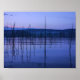 Serene och misty sommar sjö i Finland efter kraftiga regn sent på kvällen under en blå timme.