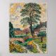 Den här vibranta väggkonsten fångar en serenpark på en vacker dag i vår. Med träd som blomstrar i skuggor av grönt, gult och vitt, ramas scenen av ett charmigt, elegant hus i bakgrunden. Människor njuter av dagen och stuggar längs solupplyst väg eller sitta på bänkar mitt i blommande buskar av rosa och rödblommor. Det tydliga blå himmel tillför en känsla av värme och lugn, och skapar denna perfekt i biet för att ha fört in en känsla av avslappning och naturens skönhet i alla rum