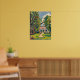Den här vibranta väggkonsten fångar en serenpark på en vacker dag i vår. Med träd som blomstrar i skuggor av grönt, gult och vitt, ramas scenen av ett charmigt, elegant hus i bakgrunden. Människor njuter av dagen och stuggar längs solupplyst väg eller sitta på bänkar mitt i blommande buskar av rosa och rödblommor. Det tydliga blå himmel tillför en känsla av värme och lugn, och skapar denna perfekt i biet för att ha fört in en känsla av avslappning och naturens skönhet i alla rum