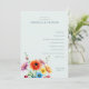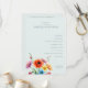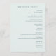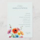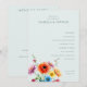 This wedding program features a minimalist layout with ample negative space, creating an elegant and clean aesthetic. The design includes soft pastel tones with muted grayish-blue text on a light cream background, complemented by vibrant watercolor-style floral illustrations in pink, orange, yellow, and blue at the bottom left corner. The classic serif typography adds a touch of sophistication, while the modern minimalism blends seamlessly with romantic elements, making it perfect for a serene and joyful formal occasion.