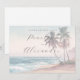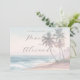 This wedding invitation features a serene beach scene with soft pastel colors and gentle brushstrokes, creating a tranquil ocean view with palm trees swaying in the breeze. The watercolor art technique gives it a dreamy quality, while the sophisticated script typography adds elegance to the design. Perfect for a romantic tropical celebration, this invitation exudes calmness and joy, inviting guests into a picturesque coastal environment.