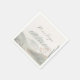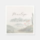 This wedding napkin features a serene watercolor landscape with soft, muted tones of blue-gray and greenish-blue hills in the background, complemented by delicate peach-colored flowers and a cactus plant in the foreground. The design employs an elegant script font for the names "Penelope" and "Alexander," creating a romantic and personal touch, while the date is presented in a clean sans-serif typeface. The minimalist yet evocative style emphasizes natural beauty and tranquility, making it perfect for a nature-inspired wedding celebration. The overall mood is calm and intimate, ideal for capturing the essence of a special day.