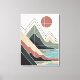 Geometric mountain landscape design combines clean lines and abstract shapes to create a modern, minimalist work of art. Inspired by the natural beauty of mountains, sunshine, and lakes, this artwork features a sophisticated earth color palette including warm terracotta, sage green, soft beige, and deep dark tones.