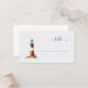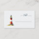 This wedding place card features a charming lighthouse illustration, rendered in a watercolor style with vibrant red and white stripes, accented by deep navy blue and soft yellow. The design is whimsical and serene, evoking the tranquility of coastal scenes, perfect for adding a touch of maritime elegance to your event. Elegant cursive typography adds sophistication, while ample negative space ensures a clean and inviting layout. Ideal for creating a memorable and personalized table setting at your special occasion.