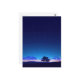 This tranquil postcard features a vast, deep indigo night sky filled with a brilliant canopy of stars and a glowing Milky Way. A solitary tree stands in bold silhouette against a soft blue and purple horizon, where distant hills and the tiny, warm lights of a quiet village peek through the darkness. The scene is finished with a textured, painterly feel, capturing a moment of profound peace and cosmic wonder. This postcard is a perfect choice for sending a thoughtful note, a calming greeting, or as a beautiful keepsake for anyone who finds inspiration in the night sky.