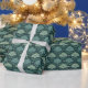 This wrapping paper features a serene botanical design with large, fan-shaped leaves in varying shades of green on a dark teal background. The pattern is accented with delicate white flowers and orange centers, creating a harmonious and calming effect. Ideal for adding a touch of nature to any gift, this modern yet natural style evokes tranquility and elegance. Perfect for special occasions or everyday gifting, the seamless repeat ensures a polished look every time.