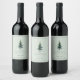 Serene Teal Evergreen Tree Illustration Vinflaska Etikett
