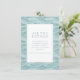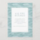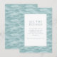 This wedding enclosure card features a serene and elegant design with a soft, pastel color palette dominated by calming shades of teal and light blue. The background showcases wavy lines that create an illusion of fluid motion, evoking the tranquility of water. A clean, minimalist layout centers around a white bordered frame containing neatly arranged text in a sophisticated serif font, providing space for essential details. The overall style is contemporary and polished, perfect for conveying information while maintaining a graceful and inviting atmosphere ideal for formal occasions.