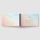 This elegant wedding guest book cover features a soft, watercolor gradient transitioning from warm peach to cool sky blue, creating a serene and romantic atmosphere. The minimalist design includes flowing cursive script for "guestbook" and clean sans-serif fonts for customizable names and date, all centered with ample negative space for a balanced look. Perfect for formal occasions, the handcrafted feel of the watercolor technique adds an organic touch, making it ideal for capturing memories at your special event.