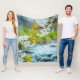 Serene White Cherry Blossoms in Spring Rain & Stre Fleecefilt