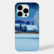 En stillastående vinterscen som visar upp ett landskap som täckts av snö och där träd jackat i frost. Himmel är en djup, moody blått som kontrasterar mot det vita snöflingor som lätt faller. I bakgrunden höljs avlägsna backe och träd i dimma, vilket ökar den sereniska atmosfären. Den allmänna bilden framkallar en känsla av fredlig ensamhet mitt under vintern.