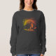 "Vibrant, flytande illustration av en serenkvinnas profil, hennes hår förvandlas till kosmisk vågar. Övertoningsnyanser av orange, rosa och gult mot en svart bakgrund, vilket framkallar en drömmande, känslofull känsla."