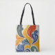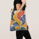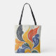 En explosion av vibrerande, texturerade former som snurrar med dynamisk energi. Organiska former i fet röd, blå, gult, grönt, orange och svart dans över yta i en fängslande, grafisk stil som påminner om linocut eller träskkonst.