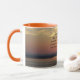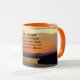 Njut av din favoritdryck i hetten eller kallet i detta keramiska kaffe mugg som innehåller en omslutningsbild av en sjölandskap i orangen tillsammans med den inspirerande orden från Serenity Prayer. Markera mugg stil och färg.