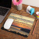 Standardmusknapp för datorn fungerar i station som innehåller fotobilden av en glödande solnedgång för orangen tillsammans med det inspirerande orden för Serenity Prayer.