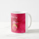 Serenity Rosa Hibiscus Coffee Mugg-fotografering av en mardy hibiscus-blomma av jumbo-storlek. Textläsningar: Serenity