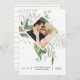 Watercolor blommig grönska och rosa vilda blommor bröllop spara datum kort i pastellfärger med guld geometrisk ram kan anpassas till ditt evenemang detaljer.