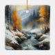 Serensnövintern, målning av flodlandskap julgransprydnad keramik