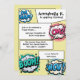 Denna anpassade partajinvitation har ett färgglatt seriebokstemaa på en gul bakgrund. Populära seriefigur-aktionsord och fraser i pratbubblor som "Oh, Snap", "OMG!", "BOOM!" och "WOW!" är placerade runt kanterna. Evenemangsinformationen är tryckt i chatt-rutor som liknar typiska serietidningar. Det är perfekt för en bröllopsfest, födelsedagsfest eller annan spännande firande.