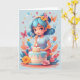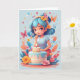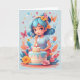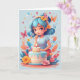 Söt flicka karaktär, med födelselsedagstårta. Tom insida för ditt personliga meddelande, och du kan lägga till din egen hälsning på framsidan.
