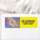 Unika och roliga popkonstserietidningsdekal etikett för David Bar Mitzvah returadress. Denna Bar Mitzvah-adressetikett är modellerad efter en serie som du skulle se i serieavdelningen i en tidning eller vad du skulle se i superhjälte-serietidningar. Den är gjord i popkonst-serietidningsstil med starka färger, solstrålning och judiska Davidstjärnan. Färgerna på denna serietidningsinspirerade Bar Mitzvah-etikett är klarblå, röd, gul, grön, orange rosa, svart och vit.
