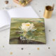 Fredfull, lugn känsla från näckrosmålningen med grönt och blått och en blommande vit näckros. Redigera texten om det behövs.