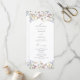 Ett bröllopsprogram med vilda blommor som har söt blommigt med vattenfärgsgrafik i mjuka blått, rosa, gult och grönt samt ett modernt teckensnitt. Perfekt för vår eller sommar bröllop och du kan koppla ihop det med vad som helst i ELODIE-samlingen för att få ett sammanhängande utseende.