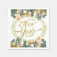 con hojas verdes y doradas en los dos laterales y feliz año nuevo rodeada de granos dorados.