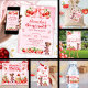 The soft pink watercolor clouds and a delicate rainbow background make these designs a whimsical choice for a "Berry Birthday" , "Berry sweet baby shower" or any summer-themed garden party.
