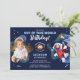 Bjud in alla dina familjemedlemmar och vänner till ditt barns födelsedagsfirande med dessa roliga födelsedagsfotoinbjudningar med Elmo i rymden. Anpassa genom att lägga till alla dina födelsedagsdetaljer.