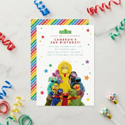 Fira ditt lilla barns speciella dag med vår Sesame Street-krita födelsedagsinbjudan! Denna livfulla och roliga inbjudan innehåller alla dina favoritfigurer från Sesame Street: Storlekret, Cookie Monster, Elmo, Oscar den Grisen, Bert och Ernie, Grover, Rosita, Greven och Abby Cadabby. Den lekfulla bakgrunden är prydd med färgglada stjärnor, vilket gör det till ett förtjusande sätt att inbjuda vänner och familj att delta i festligheterna.