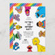 Fira i färgglad stil med denna födelsedagsinbjudan med figurer från Sesam! Den roliga designen visar alla dina favoriter som tittar in från kanterna, inklusive Elmo, Cookie Monster, Big Bird, Oscar, Grover, Bert, Ernie, Abby Cadabby med flera, alla med stora leenden och starka färger som ger omedelbar glädje. Fet, modern text i mitten framhäver födelsedagsbarnets namn, ålder och alla dina festdetaljer, inklusive datum, tid, plats och RSVP-information. Perfekt för alla Sesam-fans födelsedagsfest full av skratt, lärande och glada minnen.