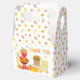 Skicka gästerna hem med ett leende med hjälp av den här festens favoritlåda med Elmo i en lekfull jack-o'-lantern-pumpdräkt. Framsidan visningar ett glatt "Tack"-budskap vid sidan av höstens accenter som hay bales, pumpor, maj-stjälkar och en basket av vibranta blommor. Hela lådan är inslagen i ett färglöst mönster i utspridt höst löv och skapar en varm och charmerande beröring för fall som faller första födelsedagsfesten eller Elmo- themed firande.