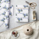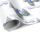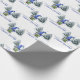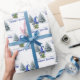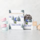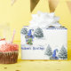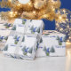 Cute Blue gnome med Julgran, snöflingor och Season Greetings-text på vitt.