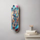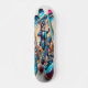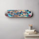 Den här sjudande skateboard-designen från "The Coola Cat Collection" har en coola kattskater mitt under en spännande körning medan sol sätter upp. Tecknets dynamiska position och uttryckliga glädje fångar den upplivande kärnan i skateboardationen. Bakgrunden, med sin gradient av sunset färg och silhuetterat handflatan träd, skapar en livlig atmosfär som symboliserar skateboardandan i tropiska miljöer.