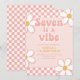 Seven är en stämning Groovy tjej Retroinspirerad 7-årsdag inbjudan med 70-tals typsnitt och prästkragar och rutmönster.