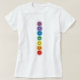En grafisk design av de sju chakraserna på en t-shirt i dam.