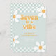 Seven is a Vibe Groovy Tjej Retroinspirerad 7-års inbjudan med 70-tals typsnitt och prästkragar och rutmönster.