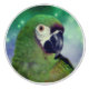 Ta hand om grönt Severe macaw-papegoja mot en fantastisk bakgrund. Djurfotografi av Susan.