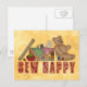 Färgfull ordart i rött och vitt paisley-mönster och en viskös bild av en söt björn sitta med en öppen fullt basket av syande verktyg. Perfektens utformning för yarnoholiker och synarkomaner!