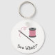 Lustigt spel på ord. Sew What?-design med nål och rosa-tråd